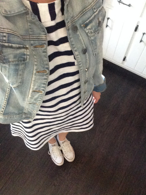 Today I actually had to come into work, so I am rocking my striped dress from Old Navy and my converse :)